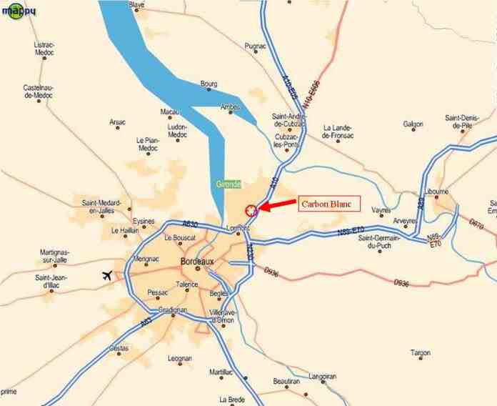 Carbon Blanc se situe à environ 10 Km au nord-est de Bordeaux (Gironde - France)